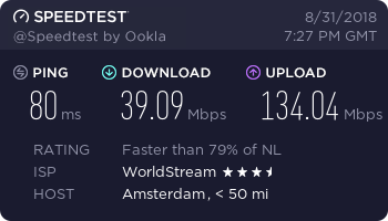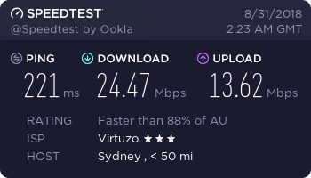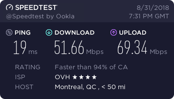 Location | Ping (ms) | Download (Mbps) | Upload (Mbps) |