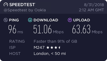 In my testing, download speeds were fair but not exceptional. On a fast broadband connection, I was able to get around 11Mbps on a well-seeded torrent using a nearby p2p server. That’s not bad, but not quite as good as you’ll find from NordVPN or ExpressVPN.