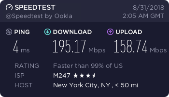 Important note: Further away servers are almost always going to be slower. We tested from a location in New York, NY so nearby (US) servers had the fastest results. If you live on another continent, you will get the fastest speeds on servers closer to you.