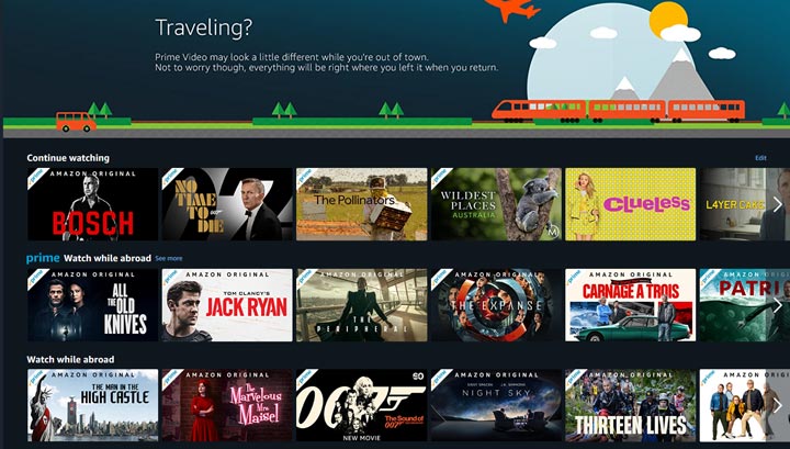 I tested it with the Prime Video app on windows, connected to a UK server. The app immediately recognized that I was abroad (good) with a message that my available library would be slightly different than I’m used to in the US.